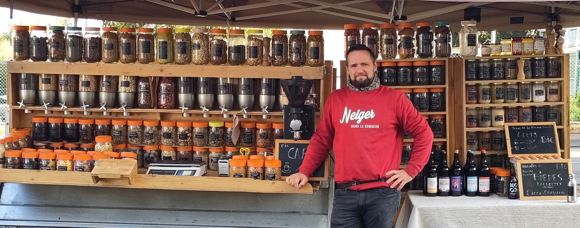 Desde el 23 de enero, mi remolque granelero y yo estamos presentes en la plaza del ayuntamiento los sábados por la mañana.